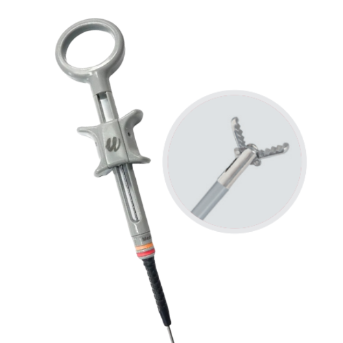 Disponível nos tamanhos de 1.8, 2.3mm de diâmetro externo por 160, 180 e 230 cm de comprimento em aço inoxidável, sem espícula na garra distal, empunhadora ergônomica.